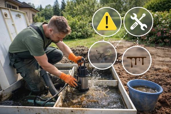 Ремонт в таких случаях часто начинается с диагностики и откачки содержимого. При сильном заиливании может потребоваться механическая очистка или частичная замена элементов системы.